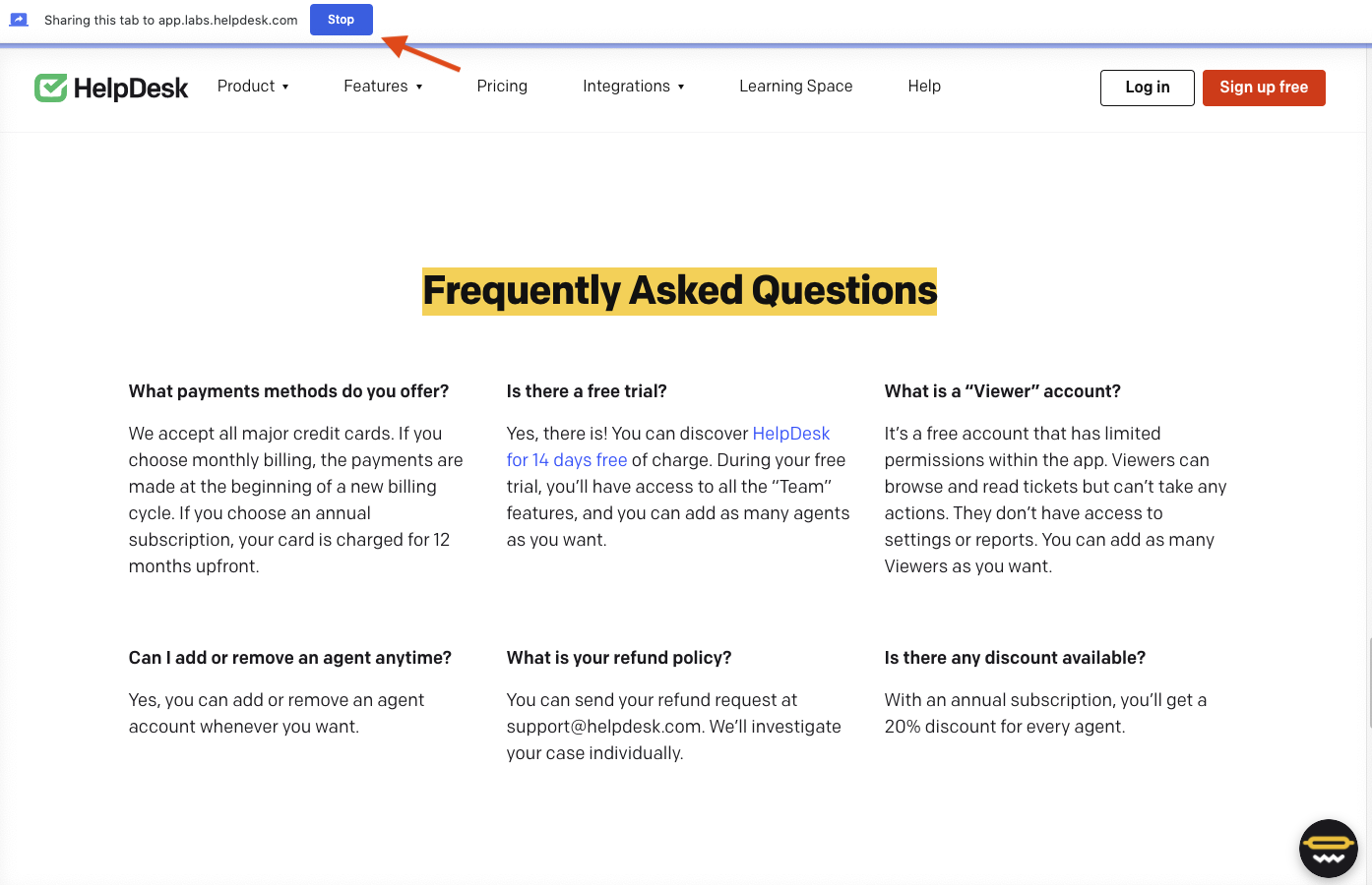 Stop the recording on another page in HelpDesk