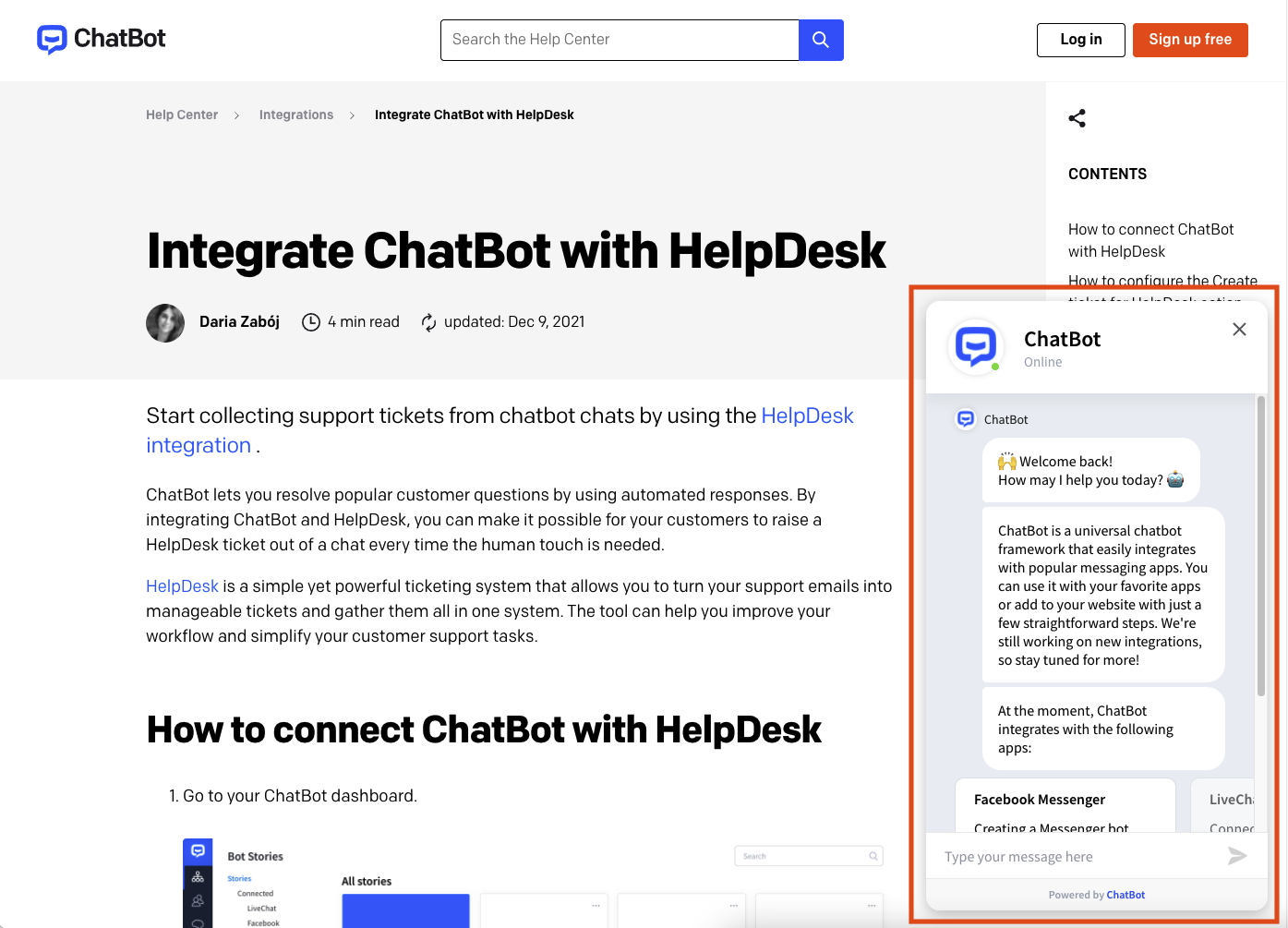 Integrate HelpDesk with ChatBot