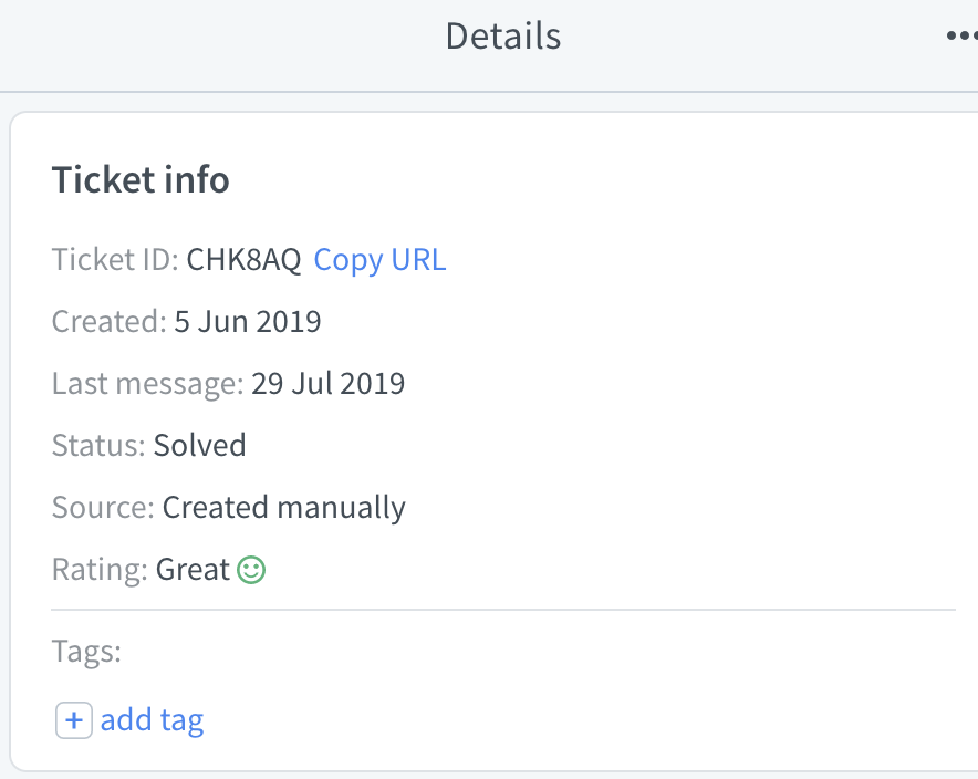 When you’re in the ticket, go to the “Ticket details” section. Then, look at the “Ticket info” part for the current ticket rating status.